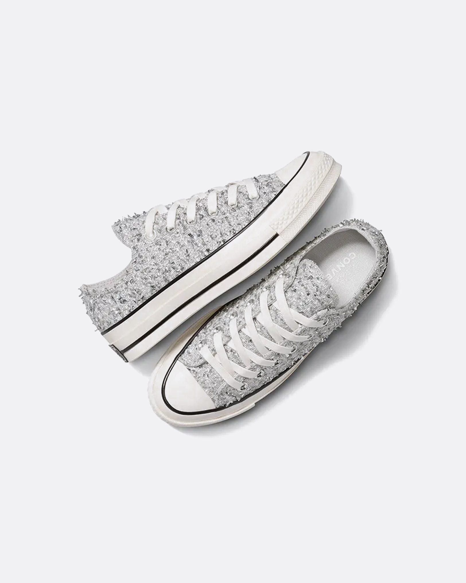 • Parte superior textil con fibras metalizadas para un look iridiscente