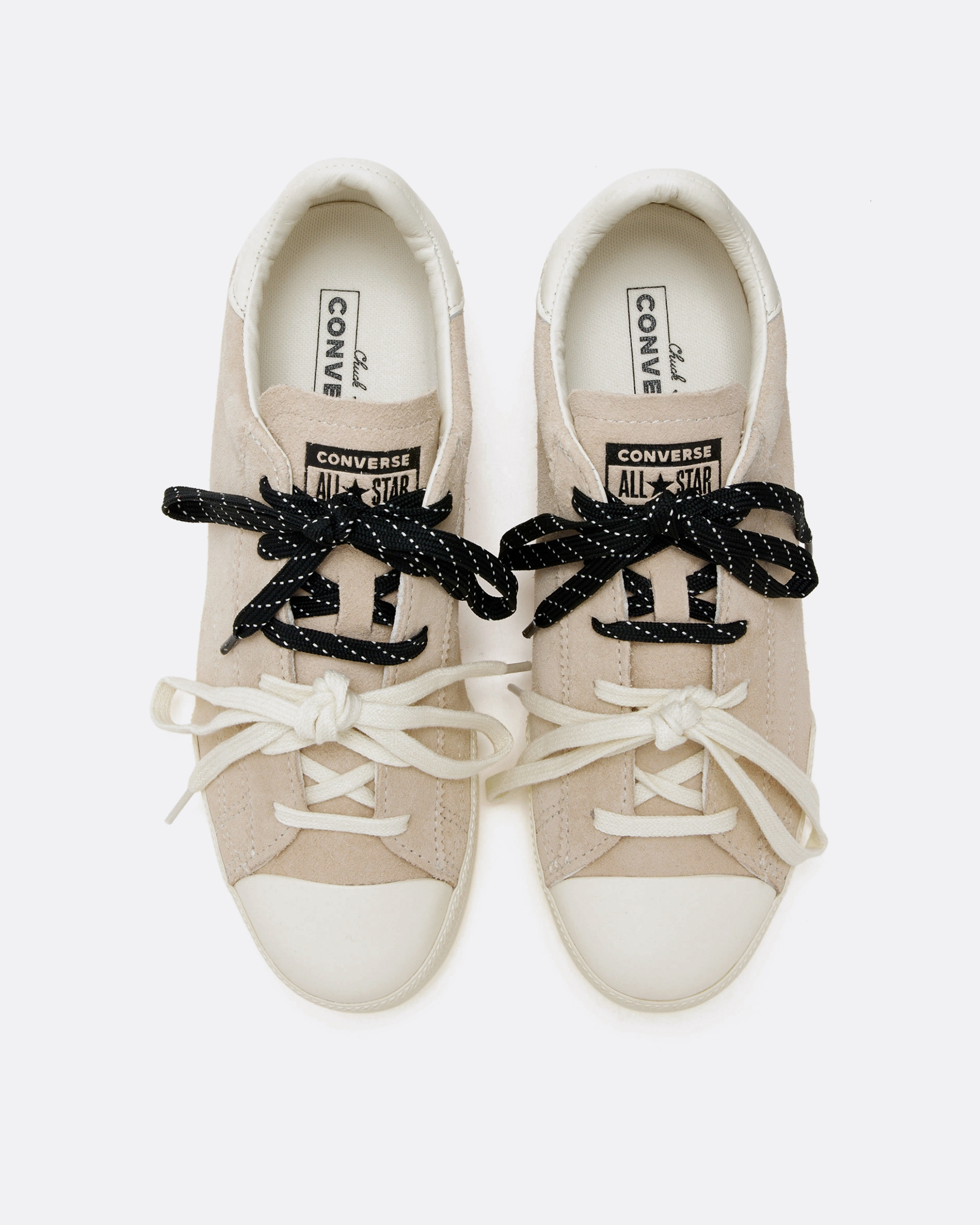 - Un par de cordones planos de algodón y otro con diseño jaspeado para cambiar el estilo